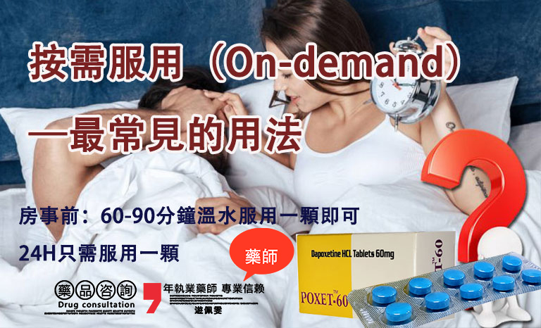 1️⃣ 按需服用(On-demand)—最常見的用法