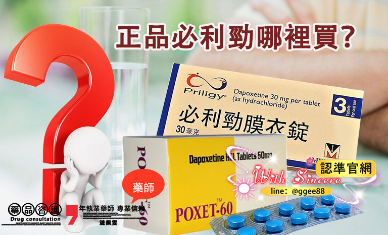 | 原廠 Priligy 30mg / 3錠 | NT$1,200 | 高品質,需處方 | 醫院 / 實體藥局 |
