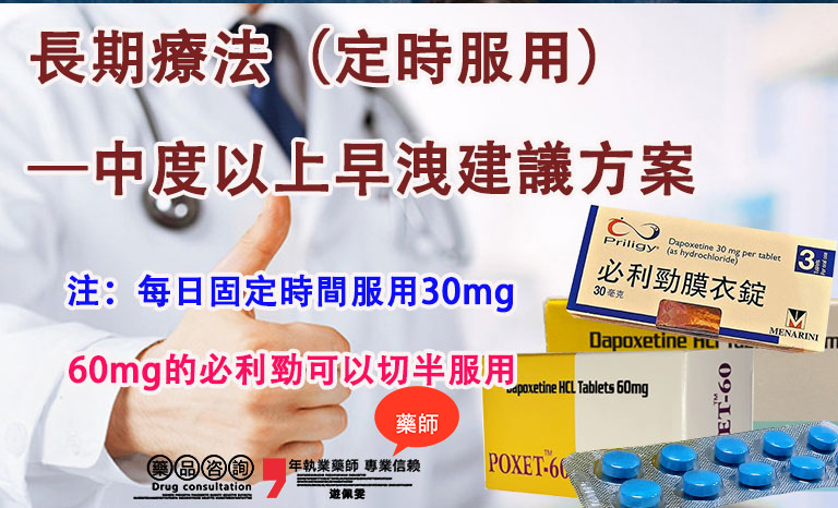 長期療法是透過每日規律服用必利勁,以降低神經敏感度,達到根本性延時效果。