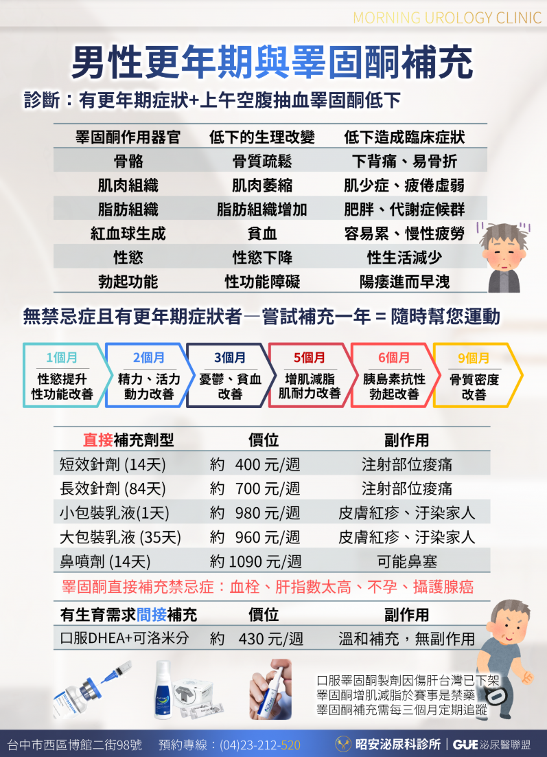 長期出現性慾下降、勃起功能異常、慢性疲勞、肌肉減少等症狀者