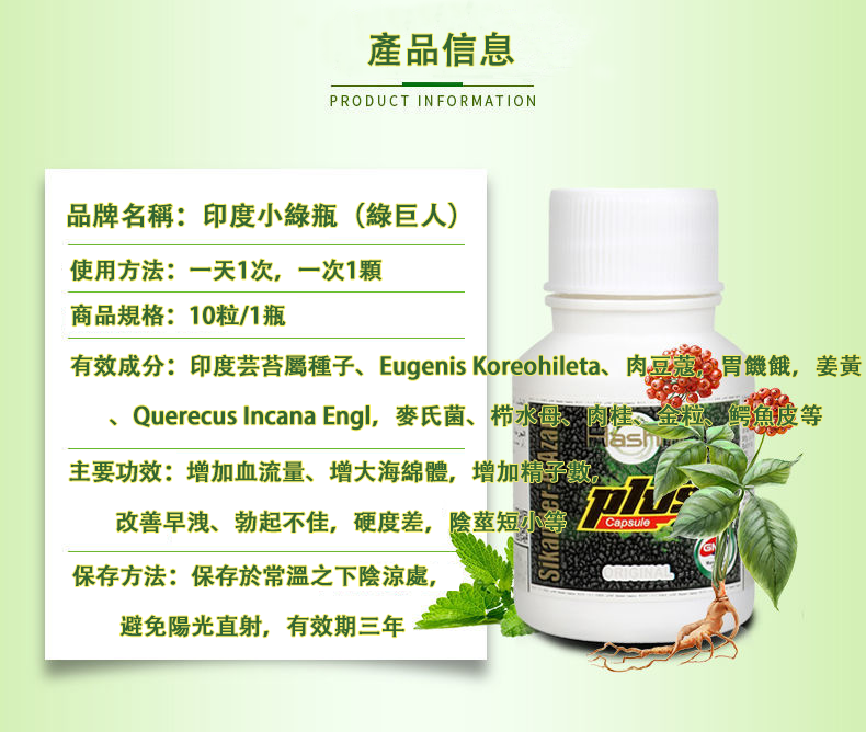 #印度小綠瓶 (綠巨人)陰莖增大膠囊#