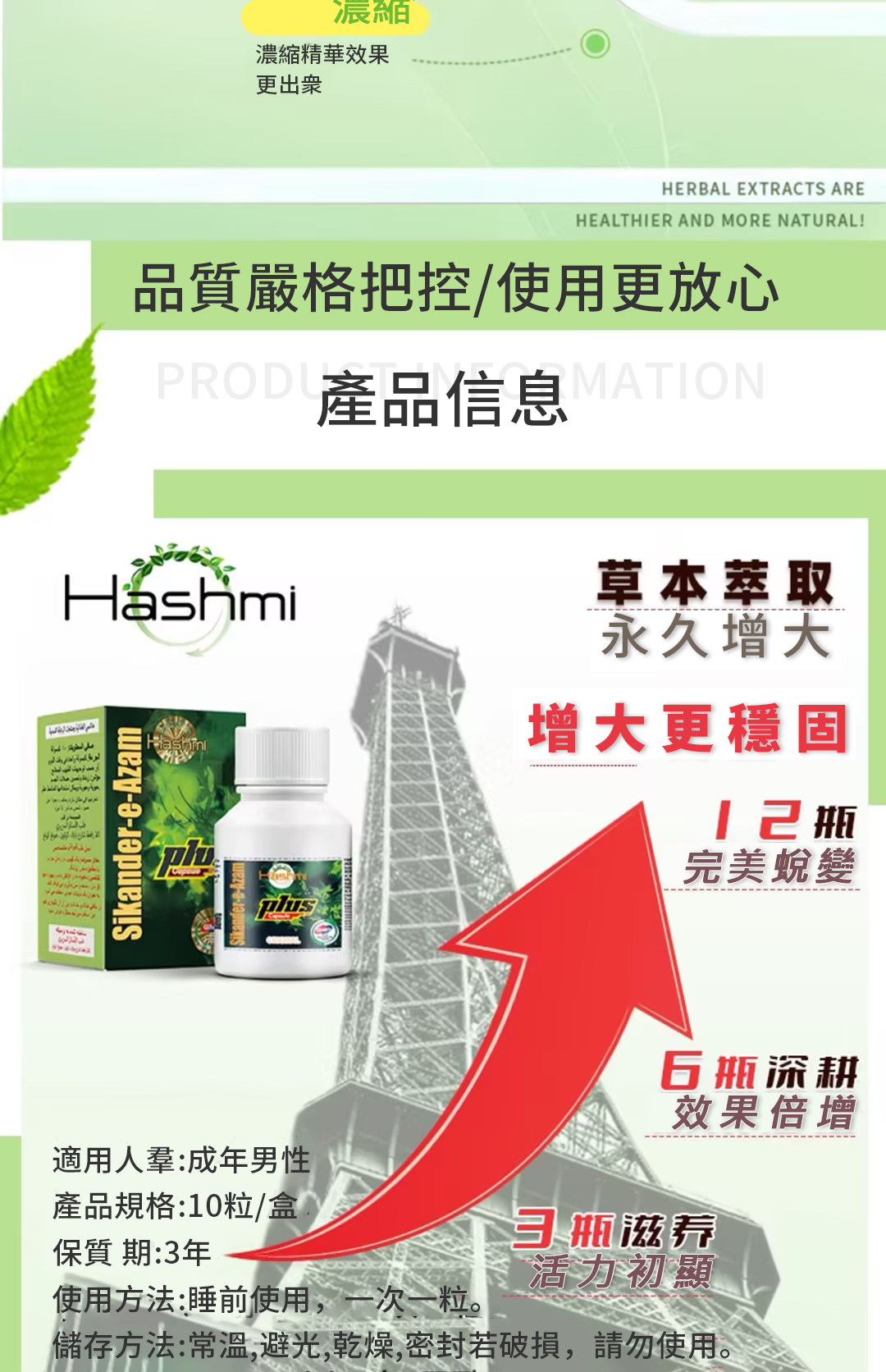 印度小綠瓶 Sikander-E-Azam 不僅是「綠巨人」的暱稱,更是一款由內而外真正強化男性機能的天然補品。為了兼顧安全性與增大效果,本產品採用100%純天然有機成分製成,無任何化學添加無西藥成分,真正做到「自然調理,持久有效」。
