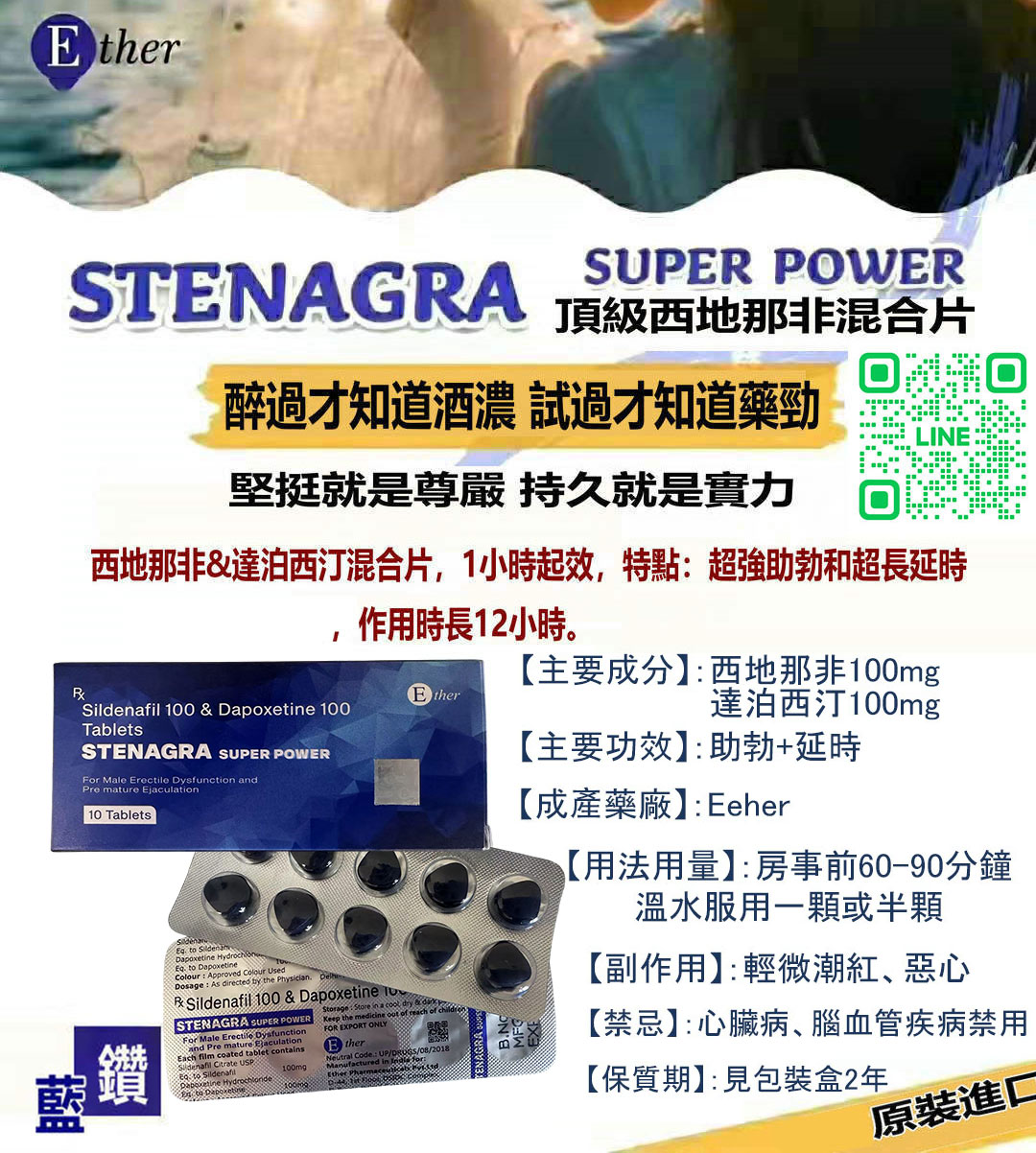 印度藍鑽(Stenagra Super Power)是一款來自印度 AMBITREE 藥廠的高效雙效壯陽藥,結合威而鋼的助勃成分「西地那非」與早洩延時成分「達泊西汀」,一次解決男性勃起障礙與射精過快問題,是追求硬度與持久力男性的熱門選擇。